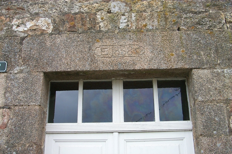 Porte d'entrée du logis gravée d'une date : détailImmatriculation