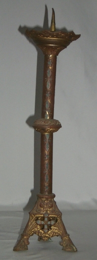 Garniture d'autel : croix d'autel, 2 chandeliers d'autel,