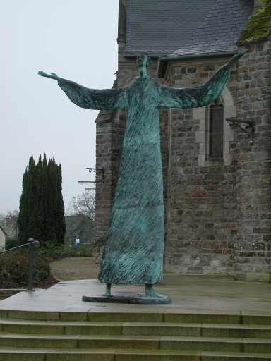 Sculpture contemporaine sur le parvis de l'égliseImmatriculation