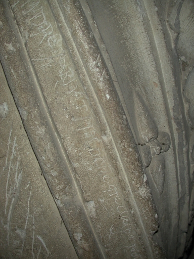 Escalier ; graffiti sur les moulures : 1785Immatriculation