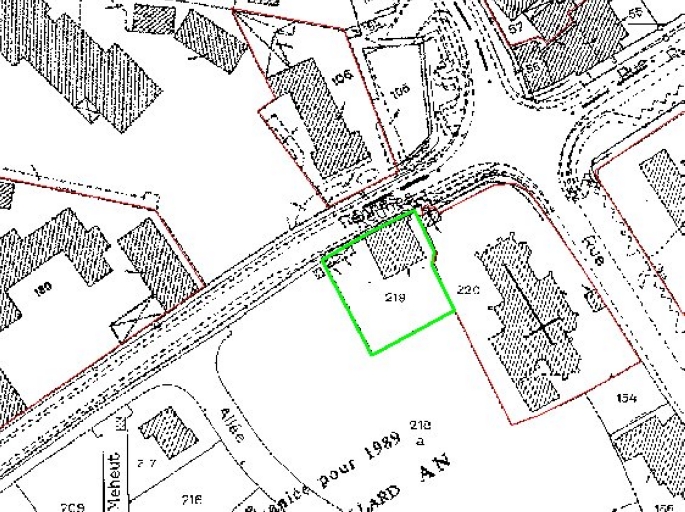 En vert, plan de situation sur le cadastre moderneImmatriculation
