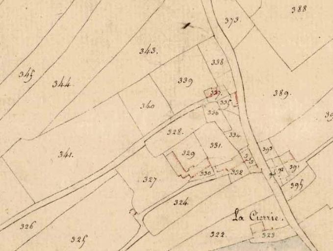 La ferme sur le 'cadastre napoléonien' parcelles 329-330Immatriculation