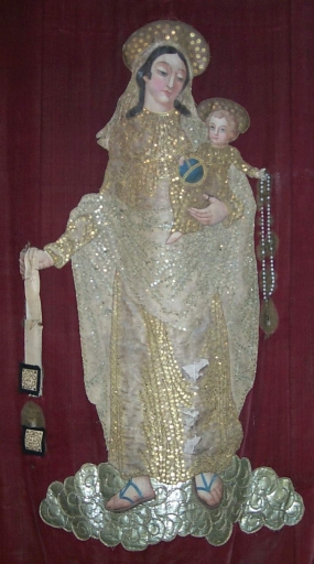 Bannière de procession : saint Melaine, Vierge à l'Enfant, dite Notre-Dame du Scapulaire (?),