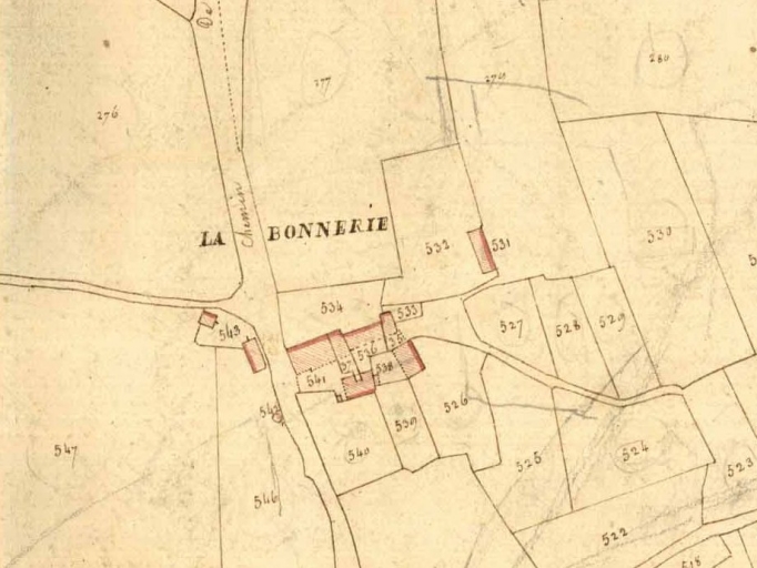 Le manoir et ses dépendances sur le cadastre de 1826Immatriculation