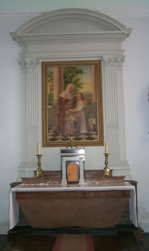 Ensemble de l'autel de sainte Anne : autel, tabernacle, retable, 2 gradins d'autel, degré d'autel,