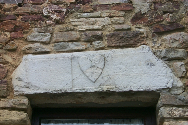 Linteau en remploi sculpté d'un blason : vue générale ouestImmatriculation
