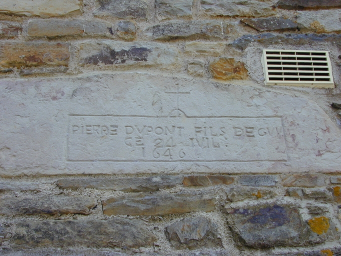 Pierre enchâssée dans le pignon portant date et inscriptionImmatriculation