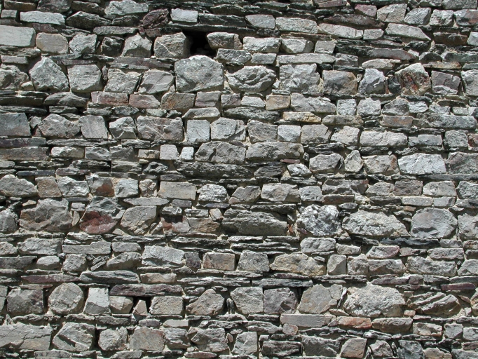 Détail : pignon du logis est ; moellons de schiste et de grès en assises alternéesImmatriculation