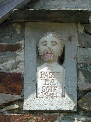 Façade sud du cellier : figure humoristique sculptée, datée 1904Immatriculation
