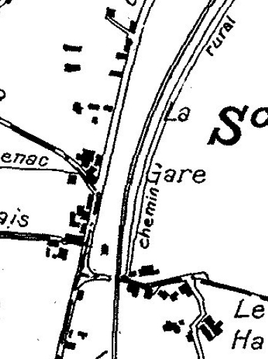 Extrait du cadastre de 1983 (T.A.) : la Gare se trouve à l'ouest de la voie ferréeImmatriculation