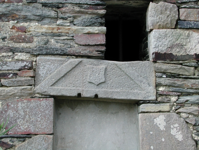 Détail : façade sud, bâtiment ouest, linteau en remploiImmatriculation