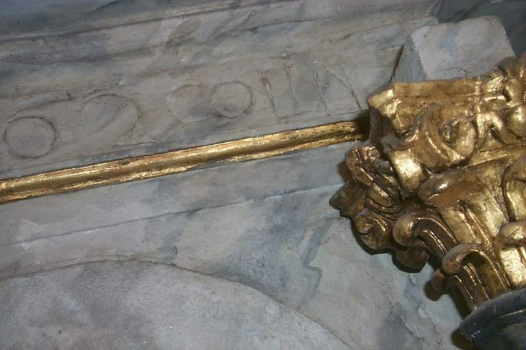 Retable, niche de couronnement : détail du nom COLINImmatriculation