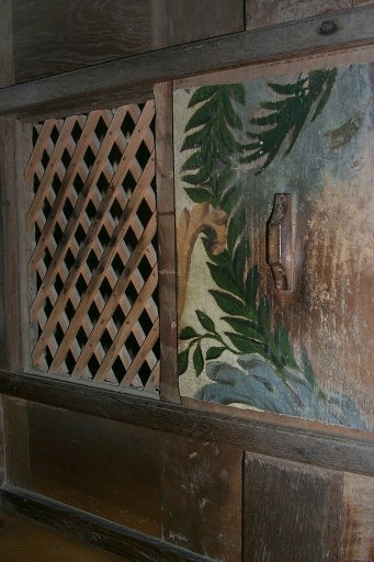 Confessionnal nord : vue générale d'un panneau ancien décoré remployéImmatriculation