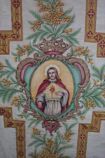 Ornement blanc 4 : chasuble, bourse du corporal, étole, manipule, voile du calice,