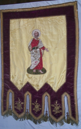Bannière de procession paroissiale : saint Pierre, Education de la Vierge,