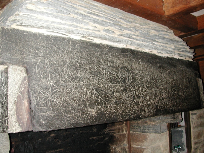 Intérieur, salle ouest, linteau de cheminée, vue généraleImmatriculation