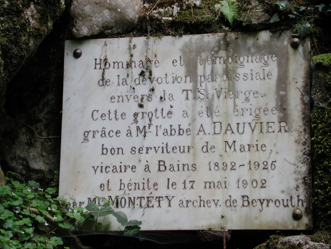 Détail : plaque commémorative de la grotteImmatriculation