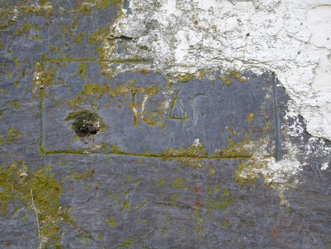 Détail : façade est, linteau de la porte nord daté '1645'Immatriculation