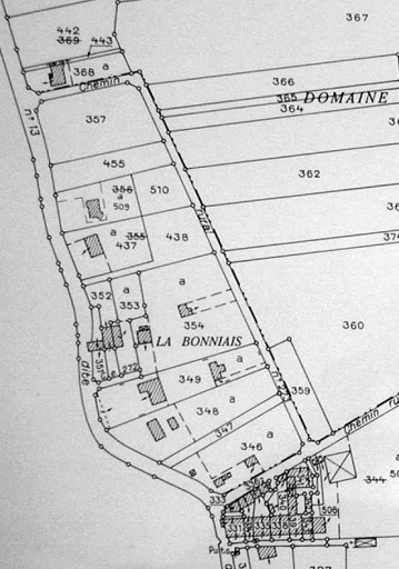 Extrait du cadastre de 1983 ; partie est de la BonniaisImmatriculation