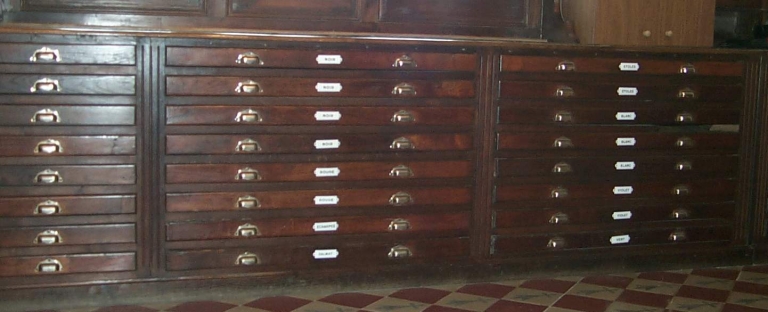 Ensemble des meubles de la sacristie : chasublier, 2 armoires,