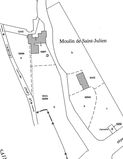 La minoterie et ses dépendances sur le cadastre de 1986Immatriculation