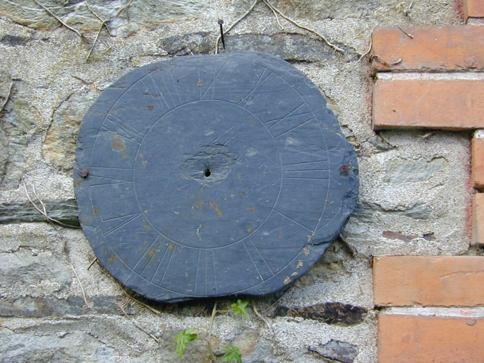 Logis, cadran solaire accroché au montant de la porte : vue générale estImmatriculation