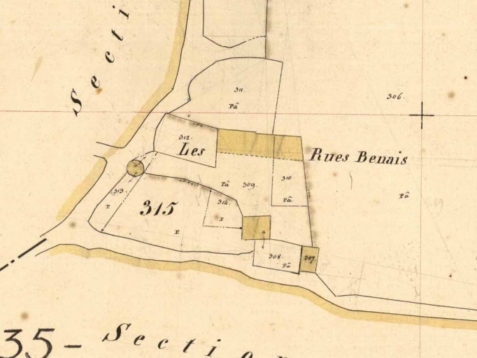 Le hameau des Rues Benais, déjà ruiné sur le cadastre en 1843Immatriculation