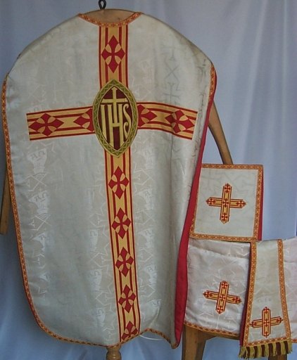 Ornement blanc 2 : chasuble, bourse de corporal, étole, voile de calice,
