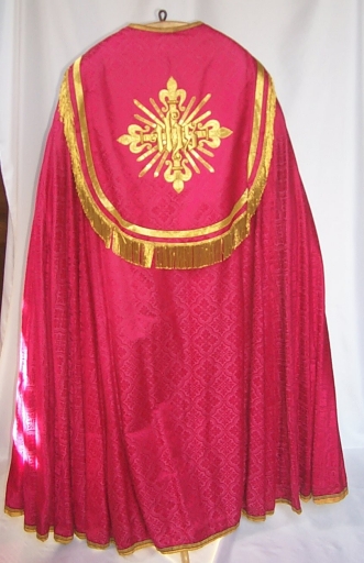 Ornement rouge 1 : chape, chasuble, bourse de corporal, étole, voile de calice,