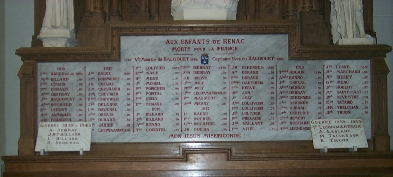 Tableau commémoratif des mortsImmatriculation