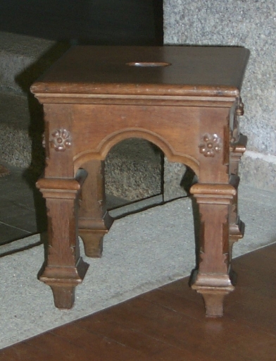 Ensemble d'un fauteuil de célébrant et 2 tabourets d'église,