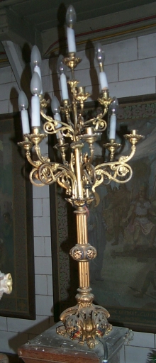 Garniture d'autel 3 : croix d'autel, 6 chandeliers d'autel, 2 porte-luminaires,