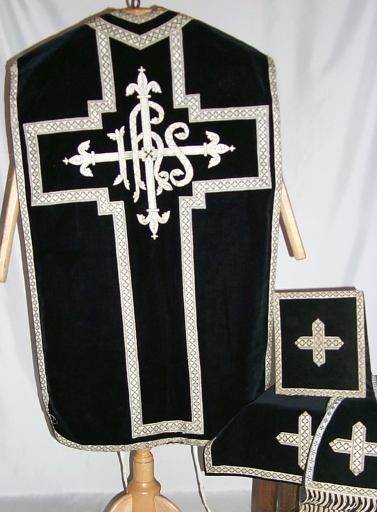 Ornement noir 2 : chasuble, bourse de corporal, étole, voile de calice,