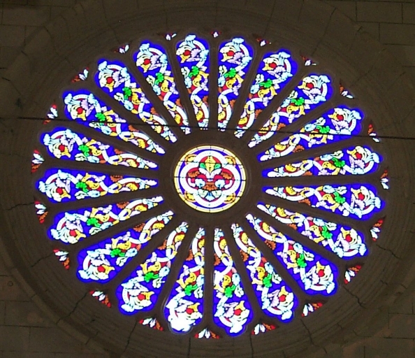 Ensemble des 24 verrières et 2 roses décoratives des baies 1 à 18, 101 à 110,
