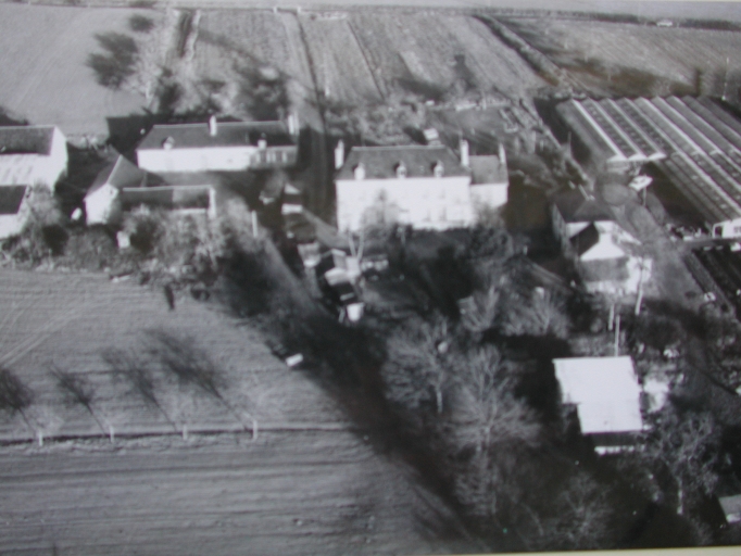 Vue générale aérienne du manoir et de la métairie de la Mettrie, façades sud (cliché G.A.L.A.T.)Immatriculation
