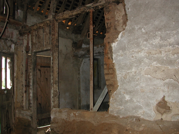Logis, vue intérieure, cloison en pan de bois et terreImmatriculation