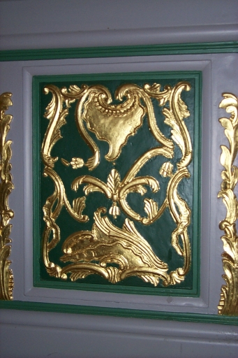 Ancienne chaire à prêcher : détail du panneau centralImmatriculation