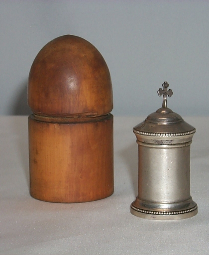 Ampoule à huile des malades et son coffret,