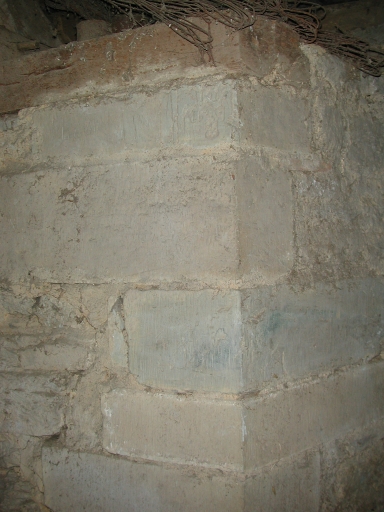 Vue intérieure, 2e étage, mur nord, montant d'une fenêtre au nord-ouest ; date inscrite 1471Immatriculation