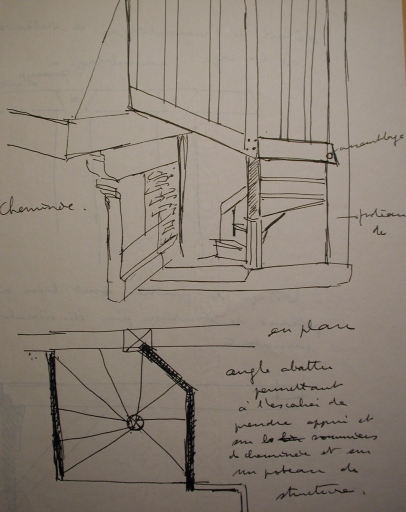 Relevé de détail : escalier prenant appui sur la cheminéeImmatriculation