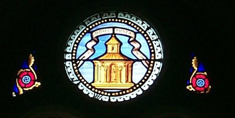 Verrières décoratives des baies 2 à 14 : litanies de la Vierge,