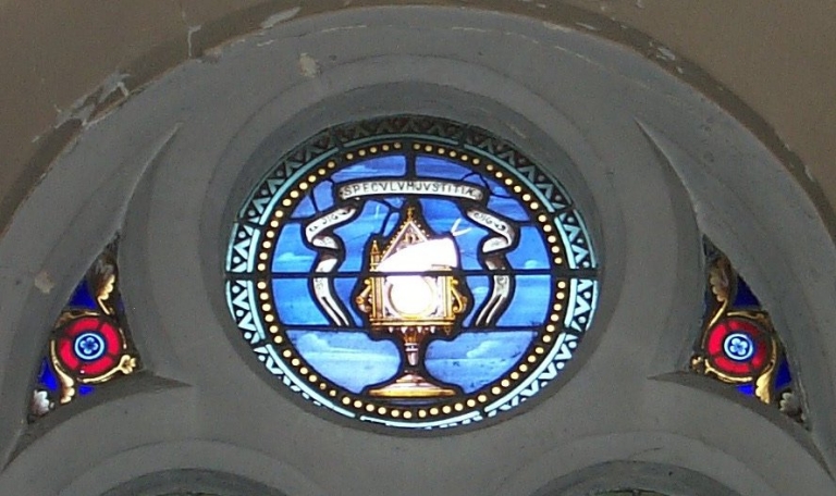 Verrières décoratives des baies 2 à 14 : litanies de la Vierge,
