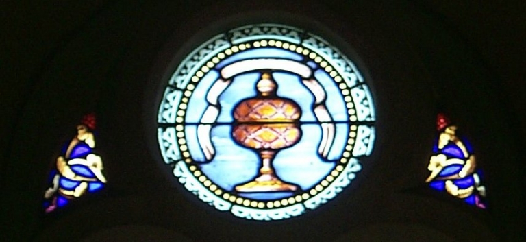 Verrières décoratives des baies 2 à 14 : litanies de la Vierge,