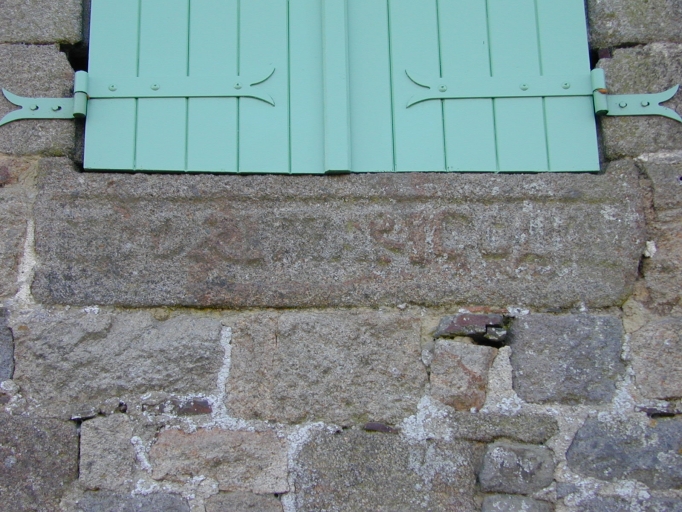 Façade postérieure, fenêtre de l'étage : détail de l'appui épigraphiqueImmatriculation