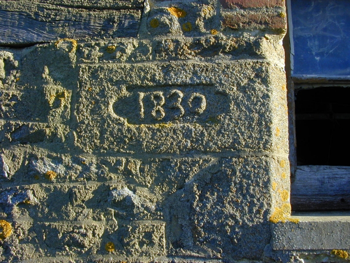 Etable, pierre gravée d'une date dans un cartouche : détailImmatriculation