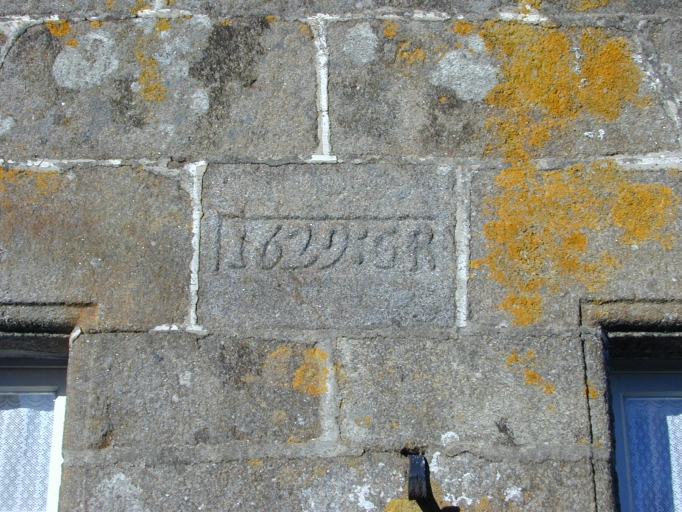 Logis, pierre enchassée dans la façade, gravée d'une date : détailImmatriculation