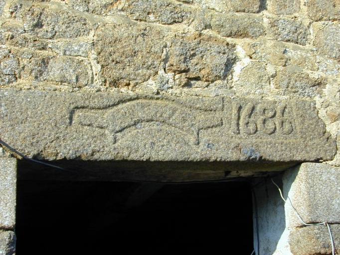 Linteau de porte gravé d'un racloir et d'une date : détailImmatriculation