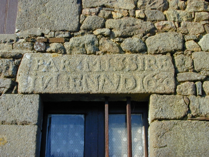 Elévation antérieure, linteau épigraphique : détailImmatriculation