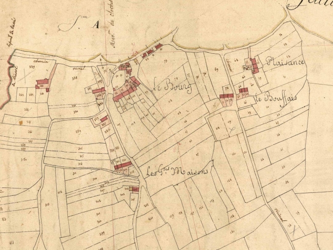 Extrait du cadastre de 1826 ; le sud du bourgImmatriculation