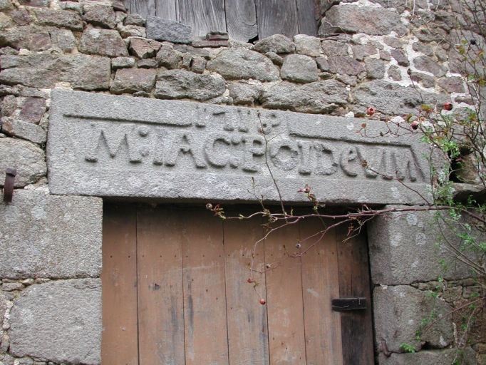 Détail : linteau de porte du logis 18e gravé : '1718 / M:IAC:POIDEVIN'Immatriculation
